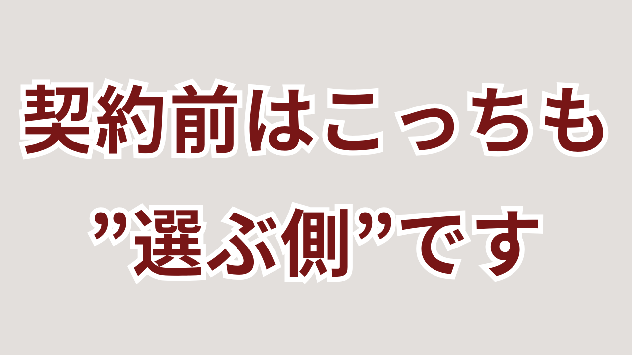 契約前は対等。こちらも「選ぶ」立場である